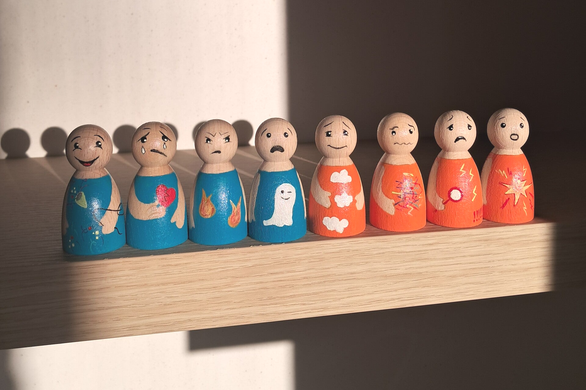 Achter elk gedrag schuilt een gevoel, maar… Het is niet altijd gemakkelijk om deze gevoelens uit te drukken. Help kinderen op een speelse en veilige manier hun emoties te uiten met deze handgemaakte peg dolls. Deze poppetjes maken emoties tastbaar en zichtbaar, zodat kinderen leren benoemen wat ze voelen én er op een gezonde manier mee om kunnen gaan. Het stelt gerust, het is oké, elk gevoel mag er zijn!