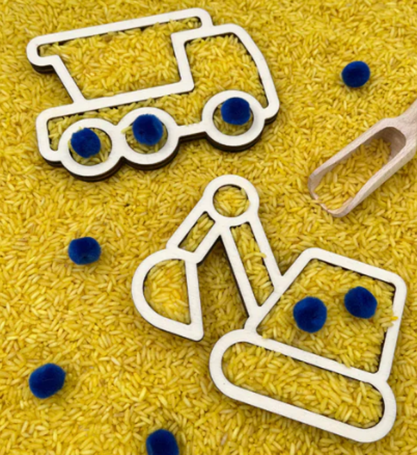 Helm op en aan de kant, want de zware machines komen eraan! Deze stoere set houten vulvormen zijn een absolute must-have voor elke kleine wegwerker of boer in de dop. Perfect voor een middag vol sensory play en bouwplezier.
