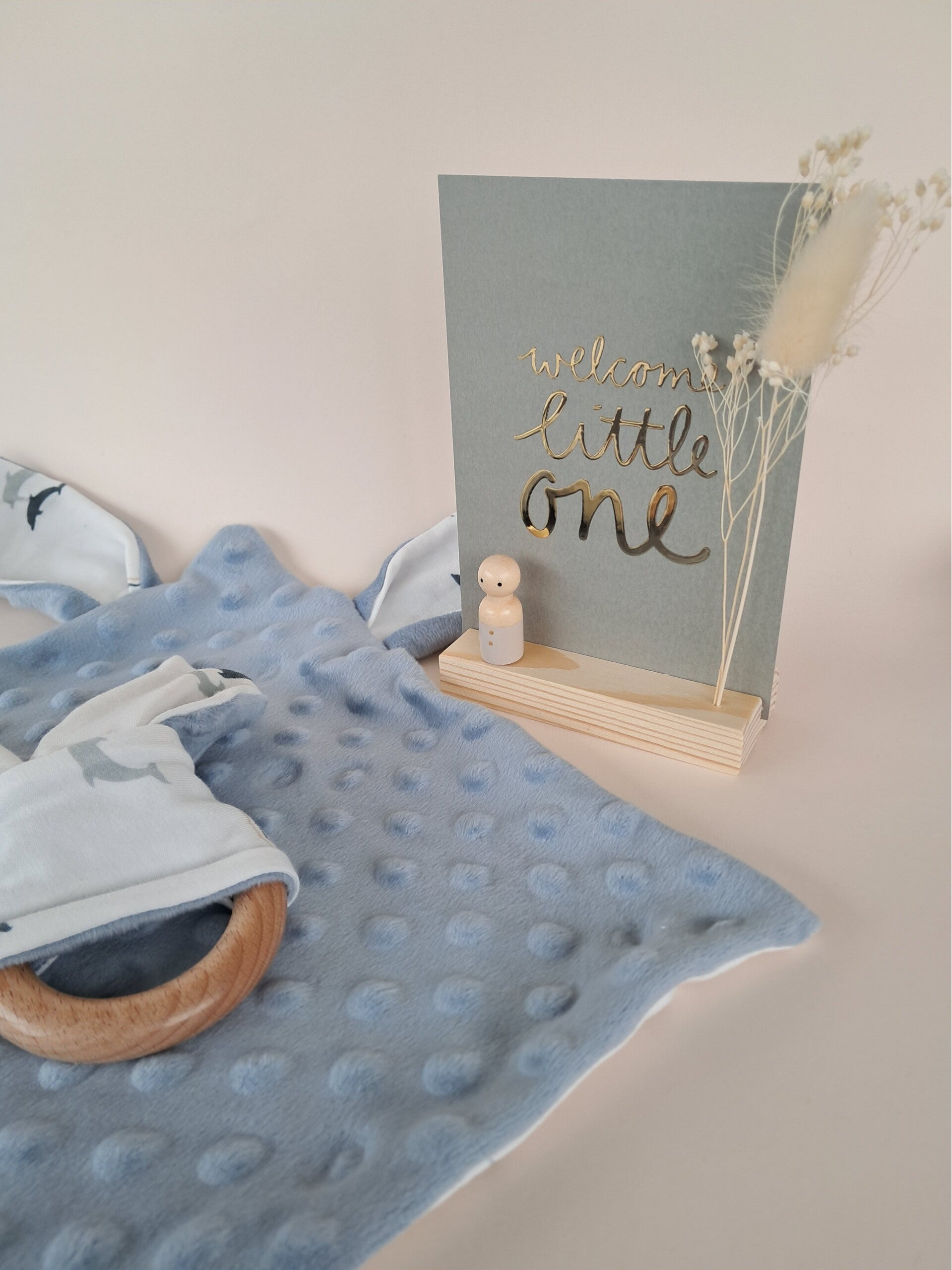 Waarom kiezen voor de Luxe Set van Doumadou? Dit is meer dan een cadeau; het is een blijvende herinnering. De houten houder en de pegdoll blijven nog jarenlang een sieraad in de kamer, ook als het kindje groter wordt.